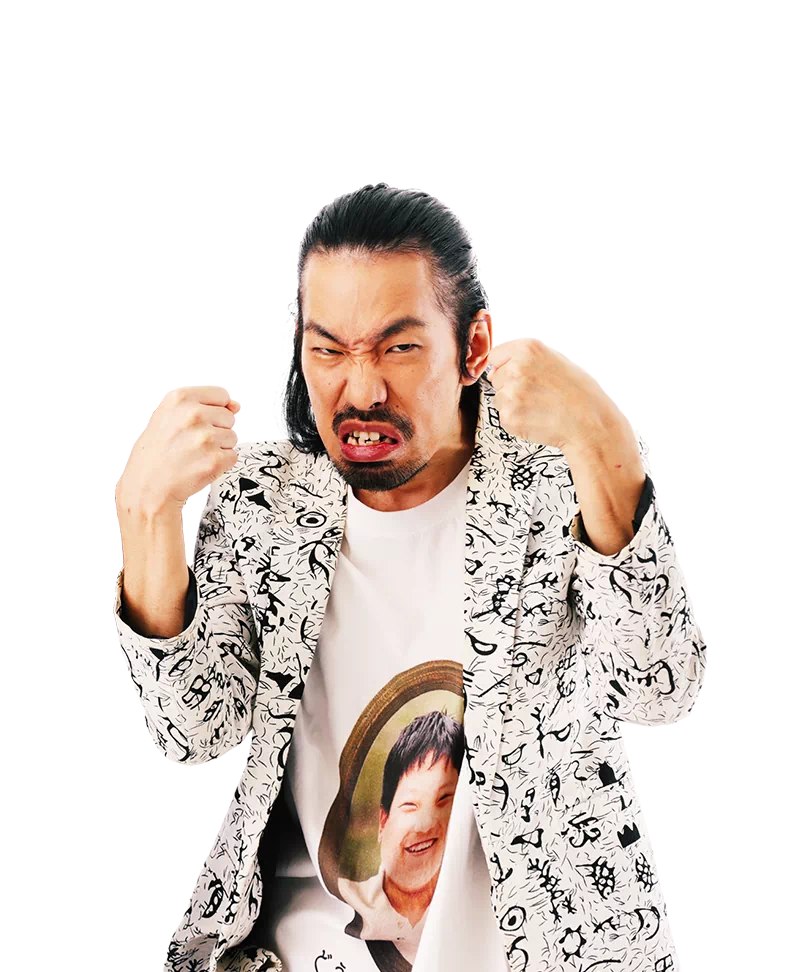 めぞんの(吉野)おいなり君が「決勝を一番盛り上げたい」と言ってましたけどね。一番盛り上げたいと思っているのは僕なんで。一番盛り上げたやつが優勝できるんで。僕が一番盛り上げるので、優勝はおいなり君じゃなくて、僕だということですね。で、相方への一言は、「僕が作り上げた芸術作品の邪魔をするなよ」ですね。